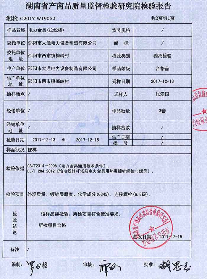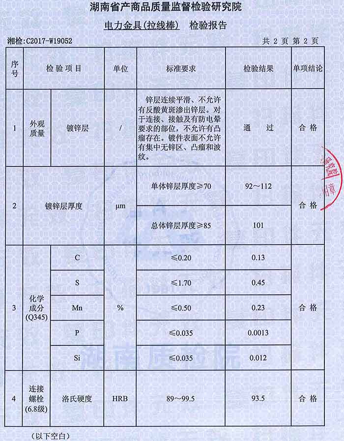 拉線棒檢驗(yàn)報(bào)告